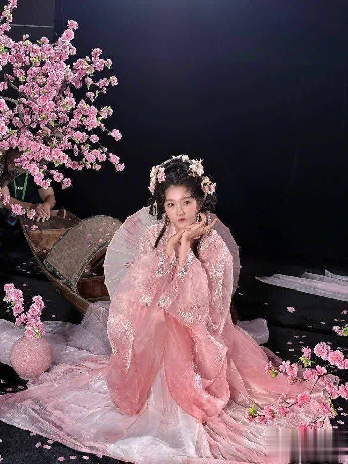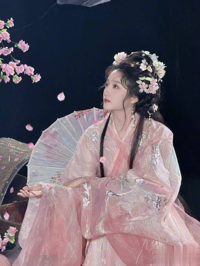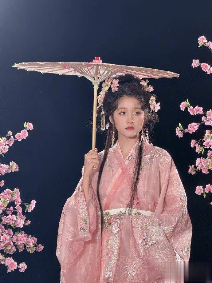 在黑色背景前,关晓彤手持粉色纸伞亭亭玉立,两侧延伸的花枝仿佛为她护航。这套汉服造型将她的端庄典雅展现得淋漓尽致,精致的刺绣花纹与简约的发髻相得益彰,展现了她对传统服饰的精准驾驭能力。不得不说,这位北京姑娘的骨相实在太适合古装扮相了!